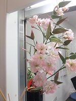 屋内でも、ディスプレイのあちこちに桜をあしらって