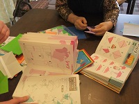 完成したものは、ひな祭りの時まではお部屋の見やすいところに飾って
