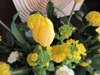 黄色いお花で集められた、パァッと明るくなるアレンジメントが