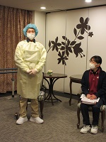 対応するスタッフは、マスクはもちろん使い捨ての手袋やガウンを