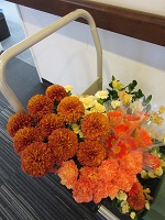 オレンジ色のお花がメインのアレンジでした。