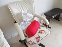 ベッドの脇に置き、腕を置いたり背もたれにしたりと