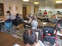 本日は、月に二回行われている音楽療法の日でした。