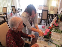 本日は、月に一回のフラワーアレンジメントの日でした。