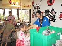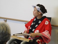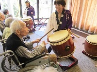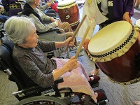 最後は、入居者様のところへ回って太鼓を叩く体験ができ