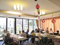 シーハーツ越谷の納涼祭で、阿波踊りの笛を吹けるスタッフがいて