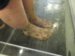 あー、顔が真っ白。おでんの汁も飛び散っています・・・。皆様、大笑い。