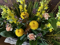黄色いスプレーマムがまんまるでとても可愛らしい