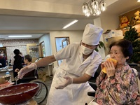 施設長はこの日もそば打ち職人大分慣れてきたようで、「あの人、施設長じゃないわよね~?」