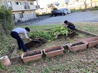 施設長とリハビリの妹尾さんと収穫してこちらの一部使ってスイーツを作りました