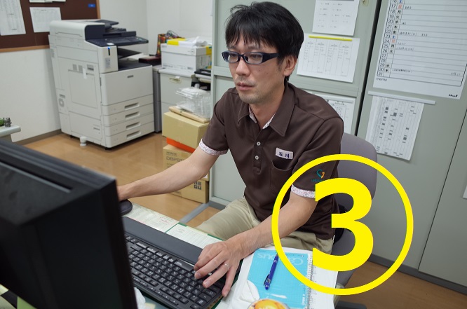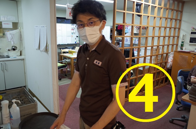 健康診断後、施設長を交えてさっそく反省会を開いていた山崎さんと熊谷さん。