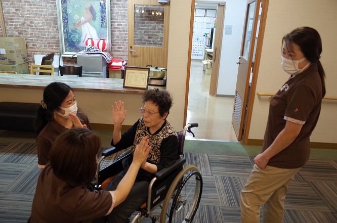 私も武田さん・大島さん・スパさん3人の介護士に負けずに