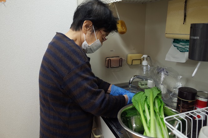 ご家族の料理含めた買い物・調理・片付け、服薬自己管理・洗濯・掃除・金銭管理・電話対応