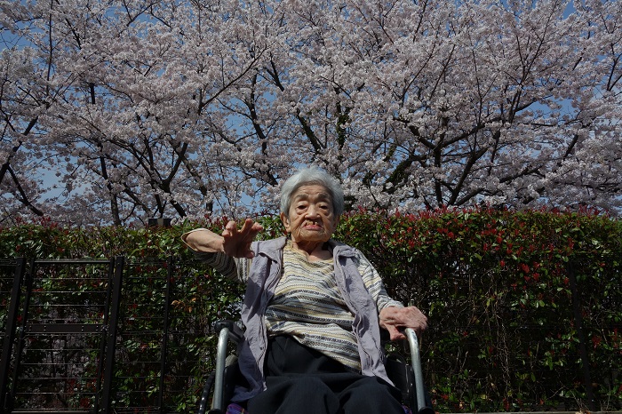 桜が綺麗ですね~とお伝えすると、眩しそうに上を見上げて