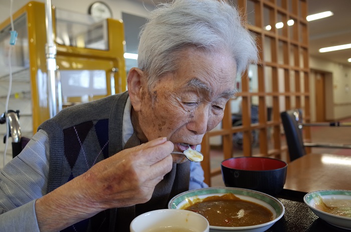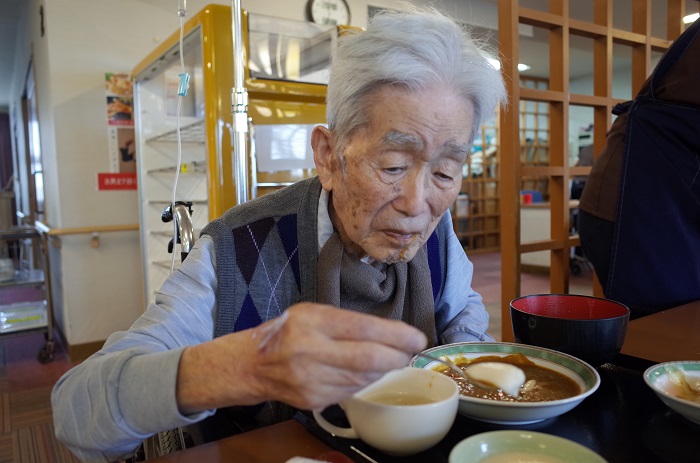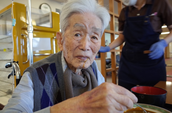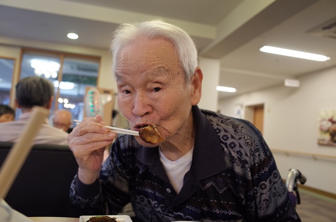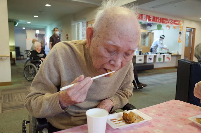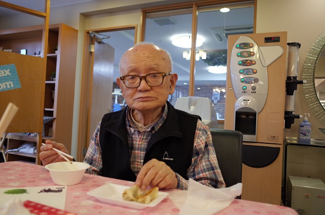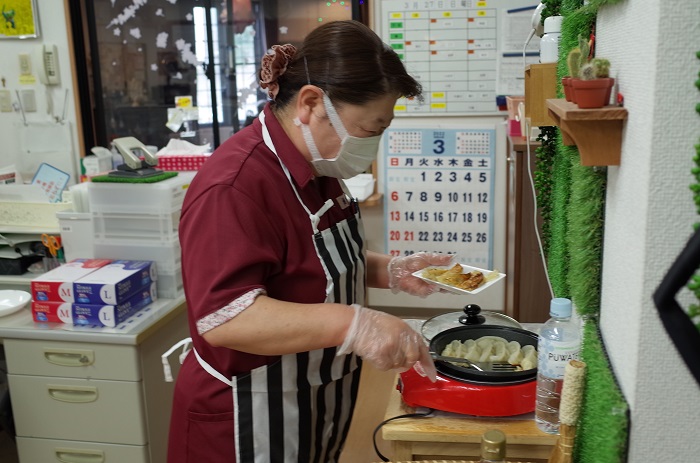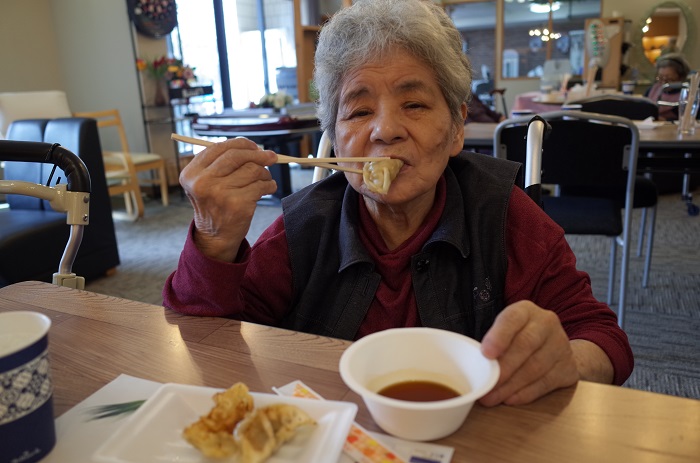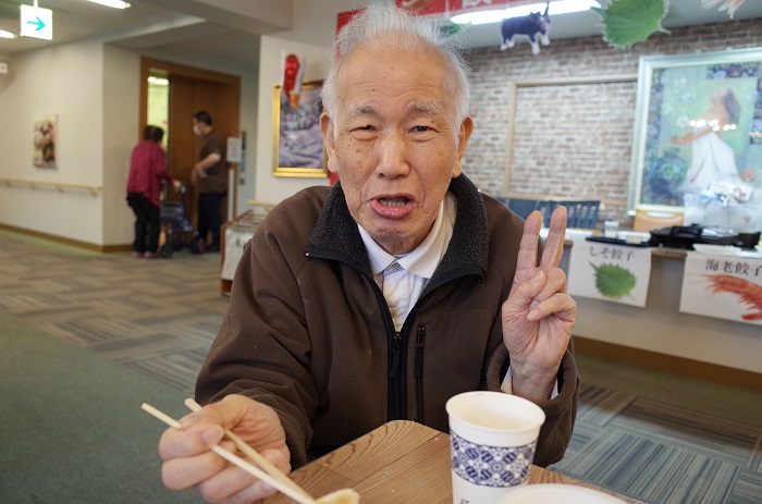 看護師の見守りのもと美味しそうに餃子を召し上がっていました。
