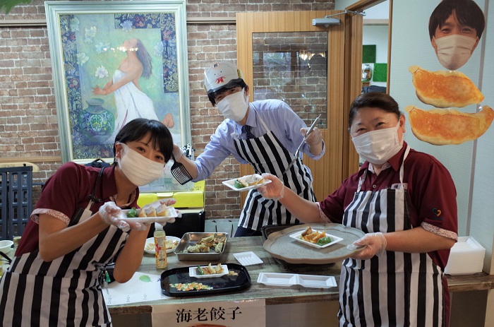 午前中からごま油のイイ匂いと餃子の香ばしい匂いが施設中に広がっており
