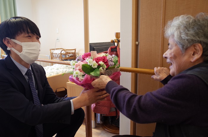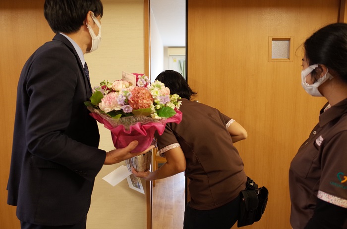 娘様達から可愛いお花が届いたので、皆でN様のお部屋にお届けしました!