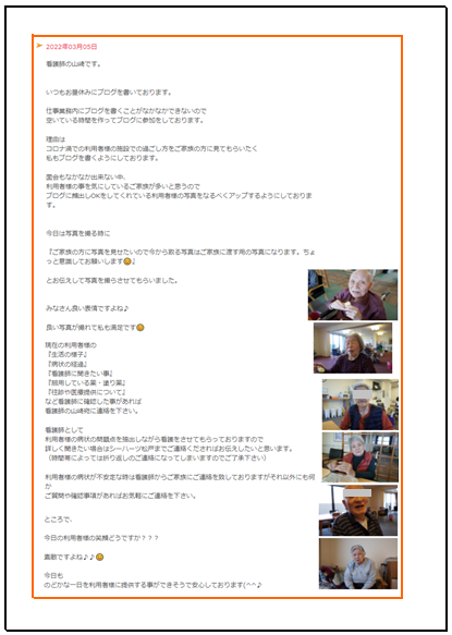 現場の介護士さんたちはブログを直接書くことはなかなかありませんが、