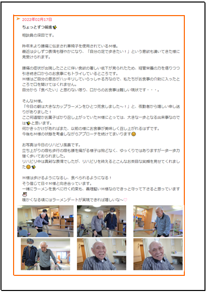 コロナ禍でご家族の方が館内に入れない分、なかの様子が少しでもお伝えできれば・・
