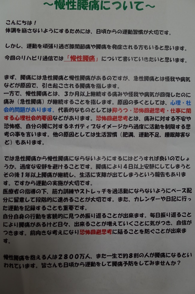 最近、腰痛や背部痛、膝痛を訴える利用者様がとても多いです。