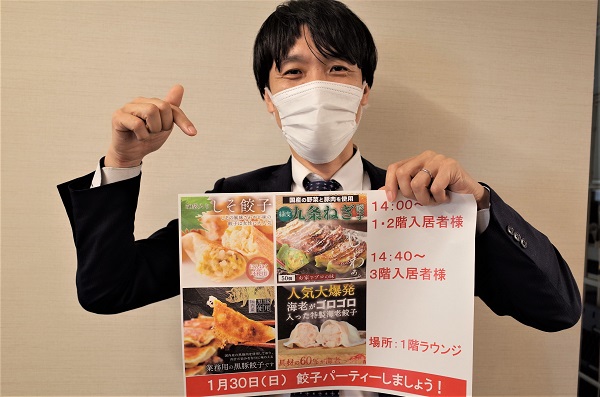 せっかく楽〇で話題の美味しい餃子をお取り寄せするので、ぜひとも全入居者様に参加していただきたいです!