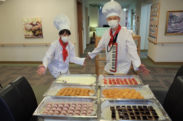 介護士の南波さんがいつも通りピアニカを持ってケーキと共に登場。