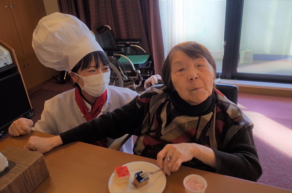 普段は食の細い入居者様も、今日はケーキをいっぱい召し上がっていました😊