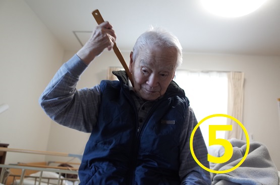 背中が痒い時も孫の手を使って背中のかゆみを1人で解決しちゃいます(写真⑤)