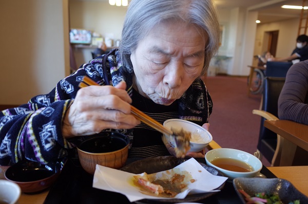 と食事の時に他の利用者様から質問されて恥ずかしそうにしているN様がとても素敵でした。