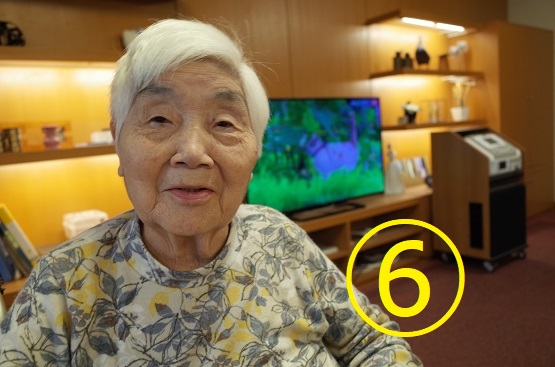 のんびりと一人で食堂のテレビでニュースを見ているM様(写真⑤)
