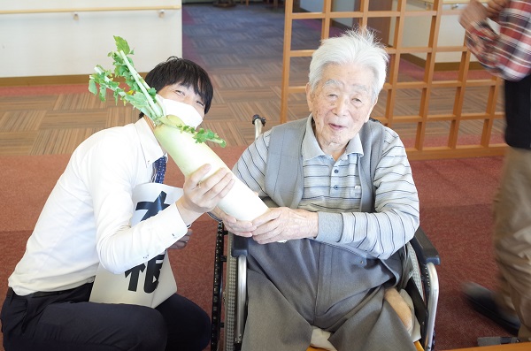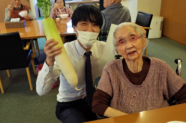 施設長が持っているのは収穫した大根が足りなかったとき用の市販の大根です。