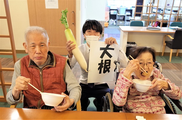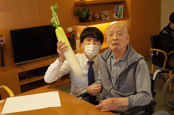 素直に収穫した大根を使って写真撮影すれば良かったのに!と樋口ケアマネに突っ込まれていました。