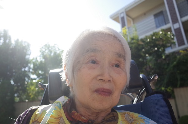 今日は「久しぶりに外に出たいわ」とご要望があったので、午前中お散歩に出ました。