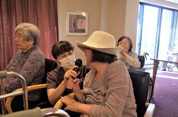 リクエストした曲を自らマイクを持って歌う入居者様もいらっしゃいます🎤