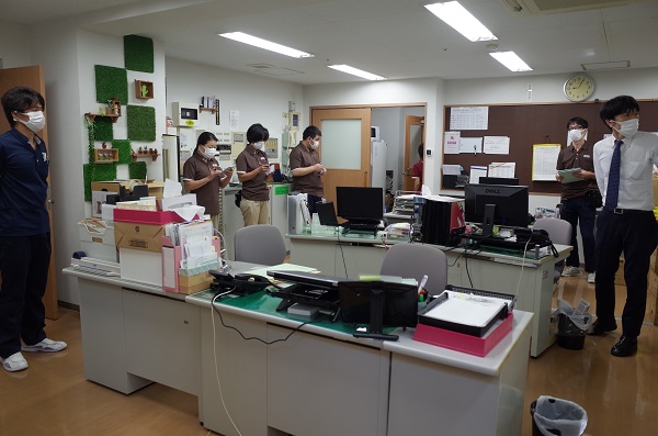 今日は早番業務の後に教育担当の廣瀬介護士と共に、明日の試験に向けて最終チェックを行っていました。
