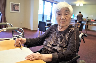 色鉛筆をお持ちになって「どこを塗るんだっけ?」と意欲的なU様。
