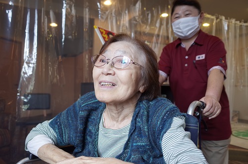 はるばる来て下さったのに窓越しでしか面会のご案内が出来ず心苦しいところですが、K様は終始嬉しそうにご家族とお喋りを楽しんでおられました。