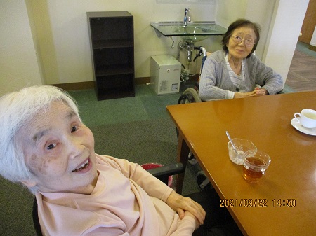 お昼寝をされている利用者様も多く15時前後は比較的のんびりした時間で利用者様同士で談笑されたり