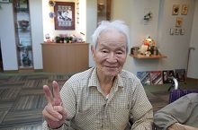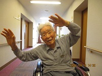 いつも職員を見つけると両手を大きく広げて職員を呼んでくれます。