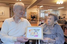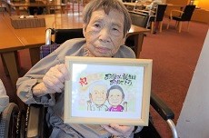 今日の午前中ブログ掲載許可のため三男様にご連絡したところ、この似顔絵はシーハーツ松戸のブログからご夫妻のお写真を引用して、プロの画家さんに依頼したものなんだそうです!