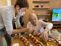 トップページ > 施設を探す > シーハーツ松戸 関連 介護付有料老人ホーム シーハーツ松戸 施設へのお電話は 047-391-1465 9時00分~17時30分 (365日受付) 入居に関するお問い合わせ 0120-1165-14 施設の特徴 施設概要 料金プラン 施設のアルバム «前へ45678次へ » 2025年10月12日 100歳イベント🎉 こんにちは!! 相談員の吉田です。 祝100歳✨✨ ご夫婦でご入居中。旦那様が先月100歳を迎えられたので、施設全体でお誕生日会を行いました🎂 フォーマルな衣装に身を包み、ご夫婦揃って入場され、施設長作の動画に、自慢のナレーター付き!! 奥様の目からは、光るものがほろり😢 施設でも決まってご夫婦そろって!「今まで喧嘩したことがないの!どこに行くにも一緒だった❤️」と・・・ 手作りのくす玉✨ 職員一同玄関に集まり、皆で記念に写真を撮りました📷 年齢を重ねて深まるシワ、その人生の歴史・・・記念として真っ赤なインクでお二人の手形を押していただきました!! これからも元気で楽しく過ごしましょうね😊 関連 2025年10月08日 何ができるかな~ こんにちは!! 相談員の吉田です。 今月は、ハロウィンの創作を行いました!! 折り紙に顔を書いて、折り紙をちぎって、それぞれできる事をし、皆で一つの作品を作り...... 完成✨ この下地は、リハビリ担当の職員さんが考えてくれました😊いつもありがとうございます🙏 関連 2025年10月04日 誕生日🎂 こんにちは! 相談員の吉田です。 先月お誕生日だったH様、I様 「お寿司が食べたい!!」 出前のお寿司を頼んで、お祝いしました🎉 誕生日なので豪華に特上寿司🍣 H様 「美味しいよ~!!」 I様 「私は良いわよ!そんな格好しないわ~ 写真もいい!いい!」「お寿司は美味しいよ~😋」 これからもお身体に気を付けて過ごして下さいね😊 関連 2025年10月01日 今年も こんにちは!! 相談員の吉田です。 今年もシーハーツ松戸にこの時期がやってきました😀😀 お越しの方は、既にご覧いただいていると思いますが、玄関から施設内に入ると、ご覧のような!!! ここはどこ? 有料老人ホームとは思えない!!(笑) 皆様きっと驚くこと間違いなしですよ~!!! お待ちしております😊 関連 2025年09月29日 バルーンアート こんにちは!相談員の吉田です。 今回はバルーンアートを作って下さる方々にお越しいただいて、可愛い作品の数々を作って頂きました😍 いくつかのサンプルの写真の中から、作ってほしい物を選んで!! 一本の風船から色んな動物達やお花、剣などが作られ、皆様「わあー😍」と目を輝かせていらっしゃいました✨✨ 作ってもらった作品をもらって嬉しそうに、皆様楽しまれてました😊 関連 «前へ45678次へ » 近隣施設のご紹介 シーハーツ小金原公園 介護付有料老人ホーム シーハーツ柏 介護付有料老人ホーム シーハーツ柏の葉 介護付有料老人ホーム グリーンライフ船橋 介護付有料老人ホーム