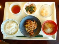 牛肉のおろし煮は牛肉、タマネギ、ニンジン、椎茸が醤油、みりん、お酒等の甘辛いタレで煮てあり、大根おろしが入っていました。味付けはしっかりしていて、大根おろしのさっぱりした食感がバランスよく食が進みました(^^)牛肉との組み合わせもとてもよく、おいしかったです(^v^)