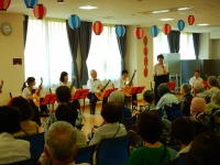 7/20♫♫、クラシックギター演奏会で合唱団「デイジーズ」さんが来ました(^^)ギター八重奏の素晴らしい演奏を披露していただきました✨お客様もたくさん来られ、触ったことのない人も弾けるようにセッティングしていただき、お客様・入居者様でギターセッションしました(^^♪最後はみんなで歌って盛り上がりました✨