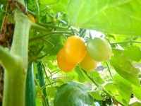 普通のトマトに、赤のプチトマト、黄色のプチトマトが次々とできてきています(^^)