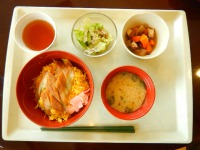 今日の昼食は「広島県ご当地グルメ」でした✨アナゴ飯はごはん・錦糸卵の上に甘辛く味付けしたアナゴが乗っていてボリューム満点でとても美味しかったです(^^♪アナゴは箸で切れるほど柔らかく入居者様もとても喜んであられました(^^)煮ごめは厚揚げ・ニンジン・里芋・小豆の甘味が感じられました✨団子汁は小さな餅が入った白みそ仕立ての雑煮のようでした(^^)/どれも普段食べないもので普段の昼食とは違った雰囲気でよかったです✨