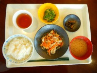 豚肉の塩ダレ炒めは、豚肉・もやし・ニンジンが入っていて、ネギやニンニクのうまみが詰まった塩ダレで味付けされていました(^^)ごはんとの相性が抜群で食が進みました✨きゅうりとみょうがの和え物はみょうがの風味がさっぱりとしていて、暑い日にぴったりでした(^^)/
