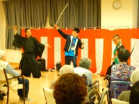 今日はカリエールにチャンバラと三味線を披露しに雲井和之助様・月夜一服様・響喜の皆様に起こしいただきました✨チャンバラは鬼気迫るスピーディーなチャンバラで入居者様・スタッフを巻き込んで笑いと緊張感満載で大盛況でした(^^)