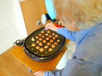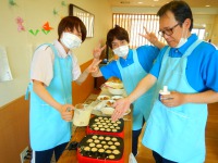 6階では、たこ焼きパーティーを行いました\(^o^)/当初はおひとり様3個を召し上がっていただく予定でしたが、大好評で、皆様、たくさんおかわりをされていました。入居者様にも焼くのを手伝って頂き、わいわい、楽しい1日になりました✿