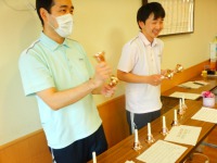 2階では入居者様と一緒にフルーチェを作りました!(^^)!味はピーチとイチゴの2種類で、トッピングにみかんが添えられていました。甘酸っぱい味が好評で、おかわりの声も多く聞こえてきました(^^)テーブルにはピンクや、赤のカーネーションが飾ってあり、皆様和やかな時間を過ごして楽しみました。