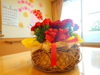 3階の母の日レクリエーションの様子をご紹介します(^^)3階は、「ウサギとカメ」の”もしもしかめよ~、かめさんよ~♪”の歌に合わせて体操をしたのですが、スタッフが、1番の歌詞しか分からず、入居者様に代わりに歌って頂きました(^^)その後に2チームに分かれて風船卓上バレーをしました。普段、あまり動かれない方も俊敏に手を動かされ、エキサイティングしました\(^o^)/負けたチームのスタッフが罰ゲームとして尻文字をしているのを見て、皆様、大笑いされていました☆母の日なので、カーネーションのバスケットをリビングに飾っていましたが、皆様喜ばれて、「きれいだね♡」「これ!〇〇円ぐらいするでしょ?」と値段の予想される方もいらっしゃいました(^^)